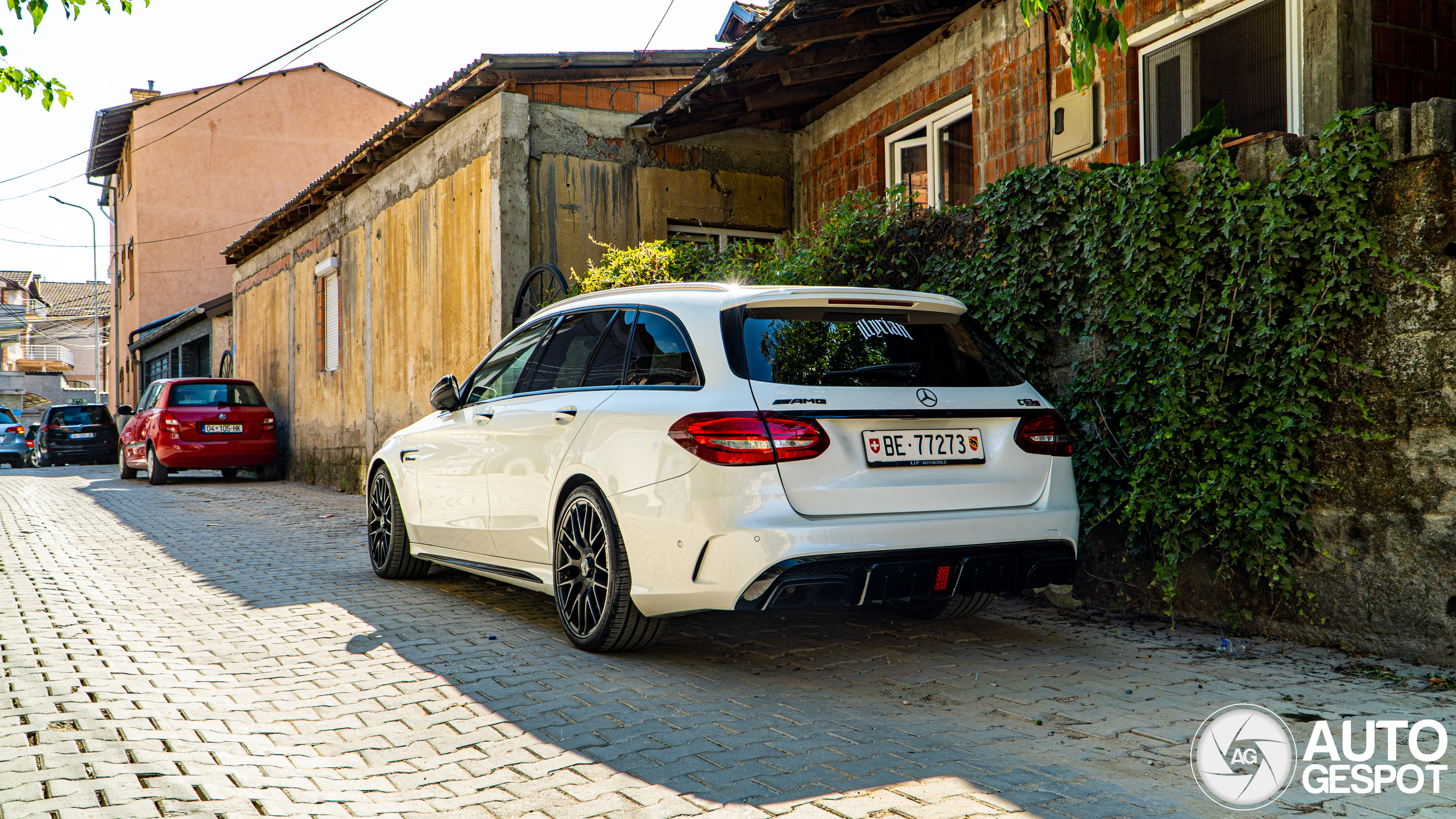 We verbleven in Prizren, de tweede stad van Kosovo. Omdat het een klein land is kan je vanuit daar prima alles doen. Buiten de steden Pristina en Prizren en wat natuur is er overigens niet heel veel te doen in het land, je hebt het vrij snel gezien. We waren de dag ervoor 's avonds in Prizren aangekomen vanuit Montenegro. 's Ochtends gingen we de stad verkennen, waarbij ik al snel deze AMG spotte in een zijstraatje. Die kon ik mooi meepakken!