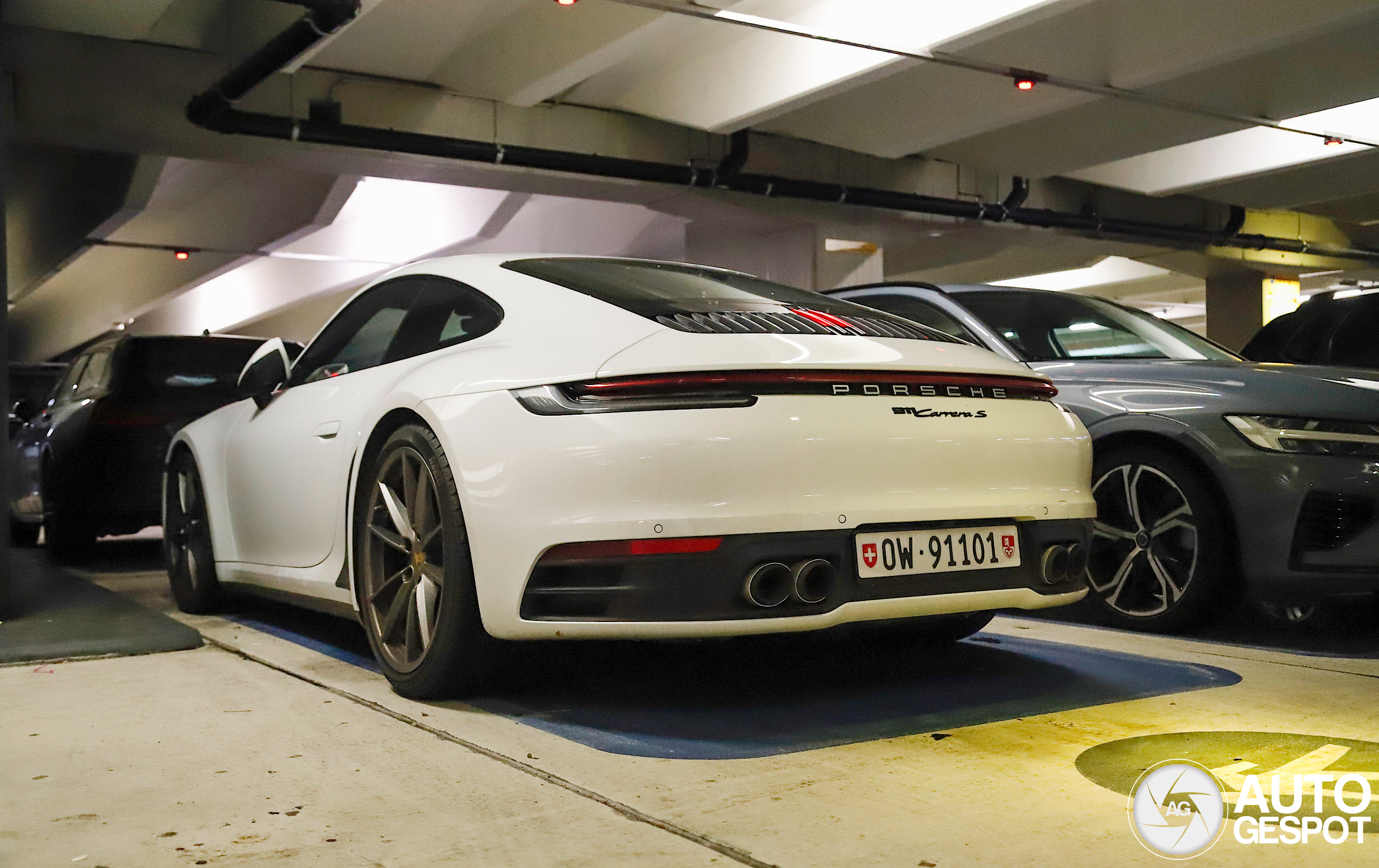 Vet op Zwitserse platen! Wel zonde van de saaie zwarte remklauwen op een auto die al zo weinig kleur heeft. Grappige feitjes: OW911U zat/zit op een 991 GT3 RS en OW991 op een R8 V10 Spyder.