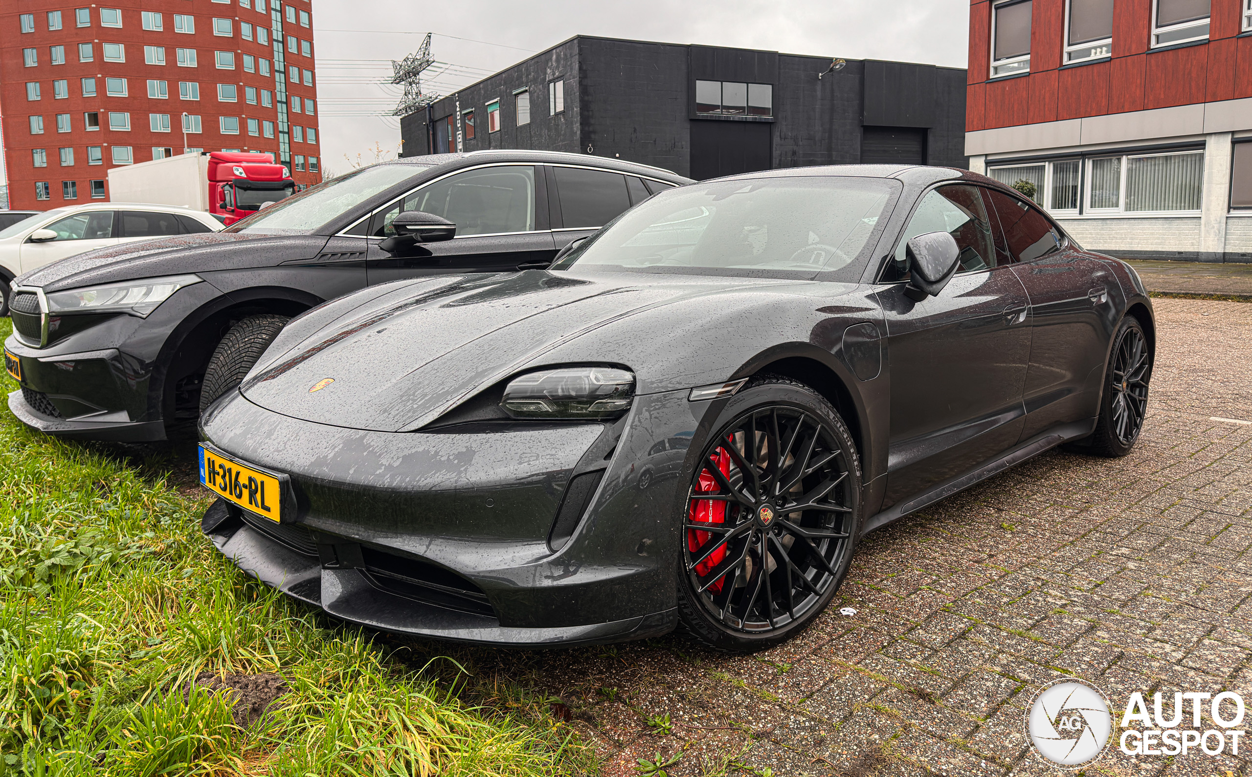 Hmm, deze Taycan ziet er nu een stukkie anders uit. Ik vond de vorige (zomer) velgen met witte remklauwen toch net wat dikker staan.